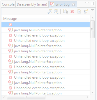 If you double click on the exception in the Error log, you should see an exception message and maybe some stack trace. Could you post the message here?