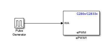 I am using a pulse generator in Simulink to create a pulse with a pulse width 50% and an amplitude of 100. The pulse is provided to the CMPA input of the ePWM1 block, as depicted in the next picture: