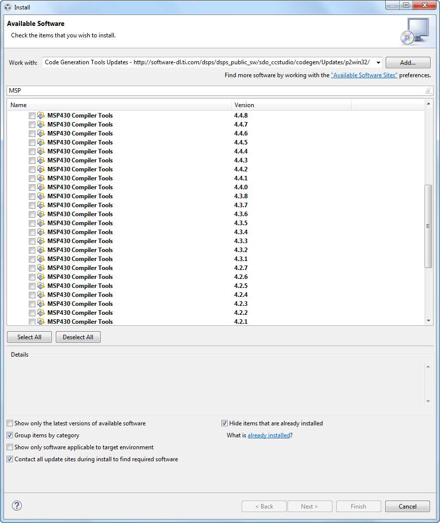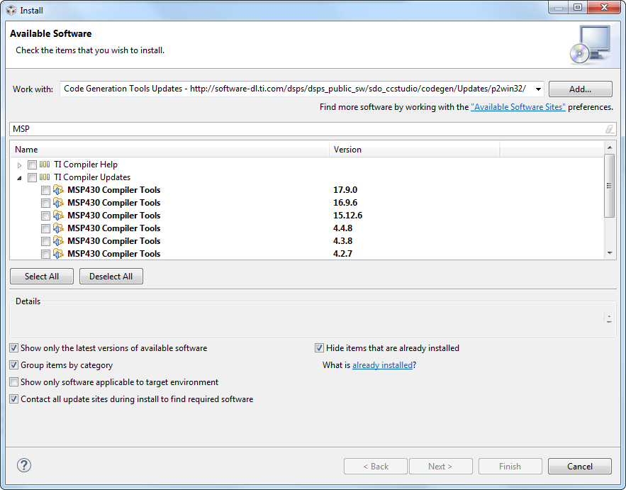 So how do I acquire all the old compilers and how do I actually use one with Eclipse? Well I guess I can just copy them all manually to my C:\ti folder but something smarter than that would be helpful.