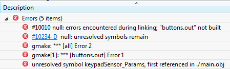 I working on captivate technology. There are some pre defined functions in captivate technology I am getting the error in code "unresolved symbol keypadSensor_Params, first referenced in ./main.obj". I have refered the code from "https://goo.gl/uUbe7n".