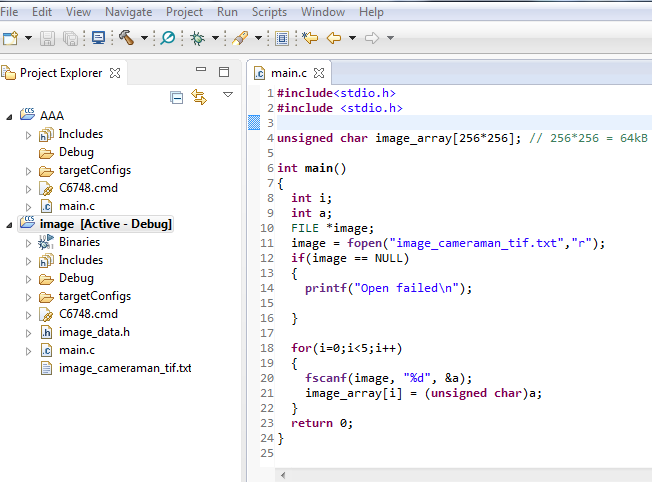 In order to read values into image_array from file image_cameraman_tif.txt I am using files concept in C.The file image_cameraman_tif.txt is not opening .Please suggest some way to open .