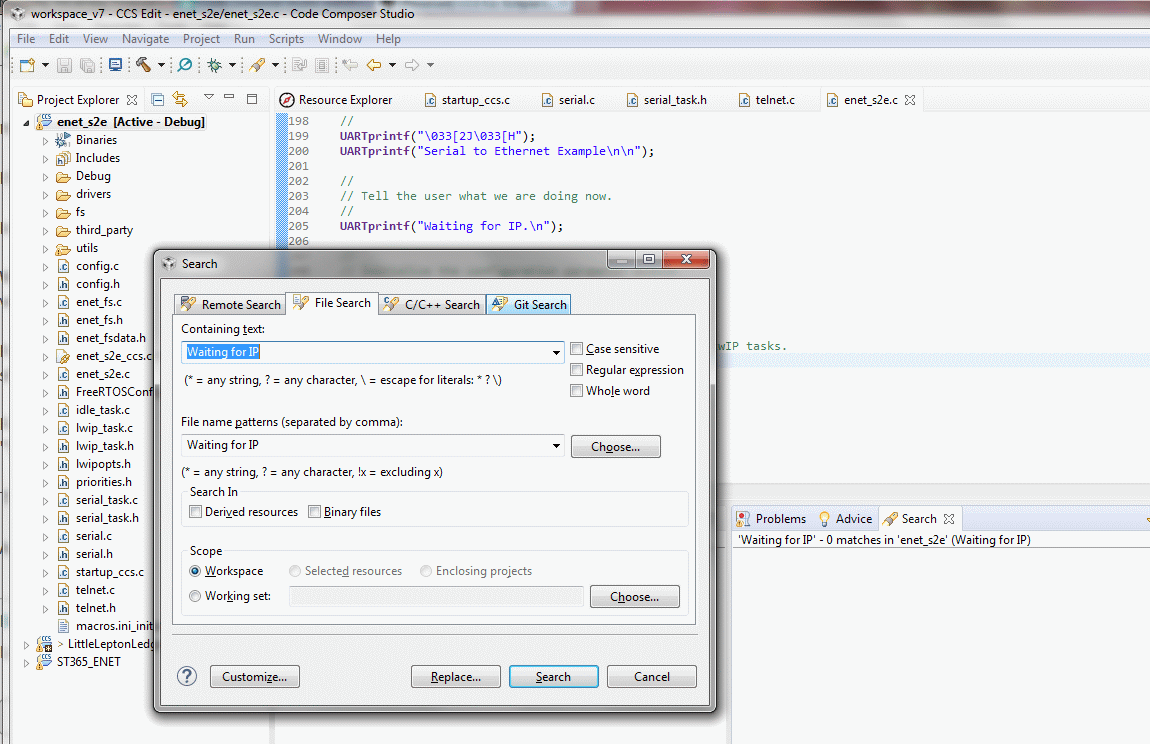 I seam to have broken the Search in Projects / Workspace feature on CCS7.