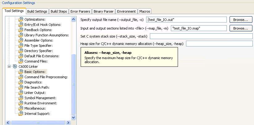 Does simulator allow heap? How does simulator treat linker.cmd file? Does it ignore that? Or if .cmd file cannot be used, is there anyway to enable heap so that these file IO operations can be available?