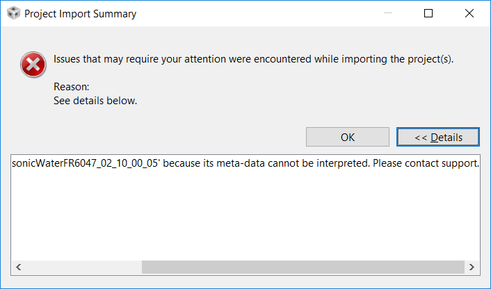 Trying to import ultrasonic water meter code (unchanged), and I get an error at import - unable to process meta-data.
