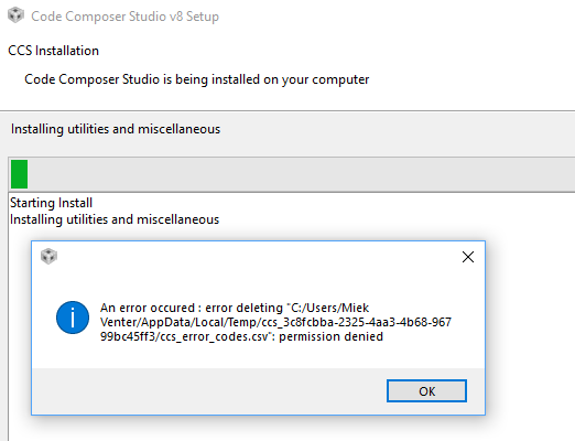 I can not install CCS on Windows 10. I disabled firewall and Defender, so got passed that step. But early in installation I get box :