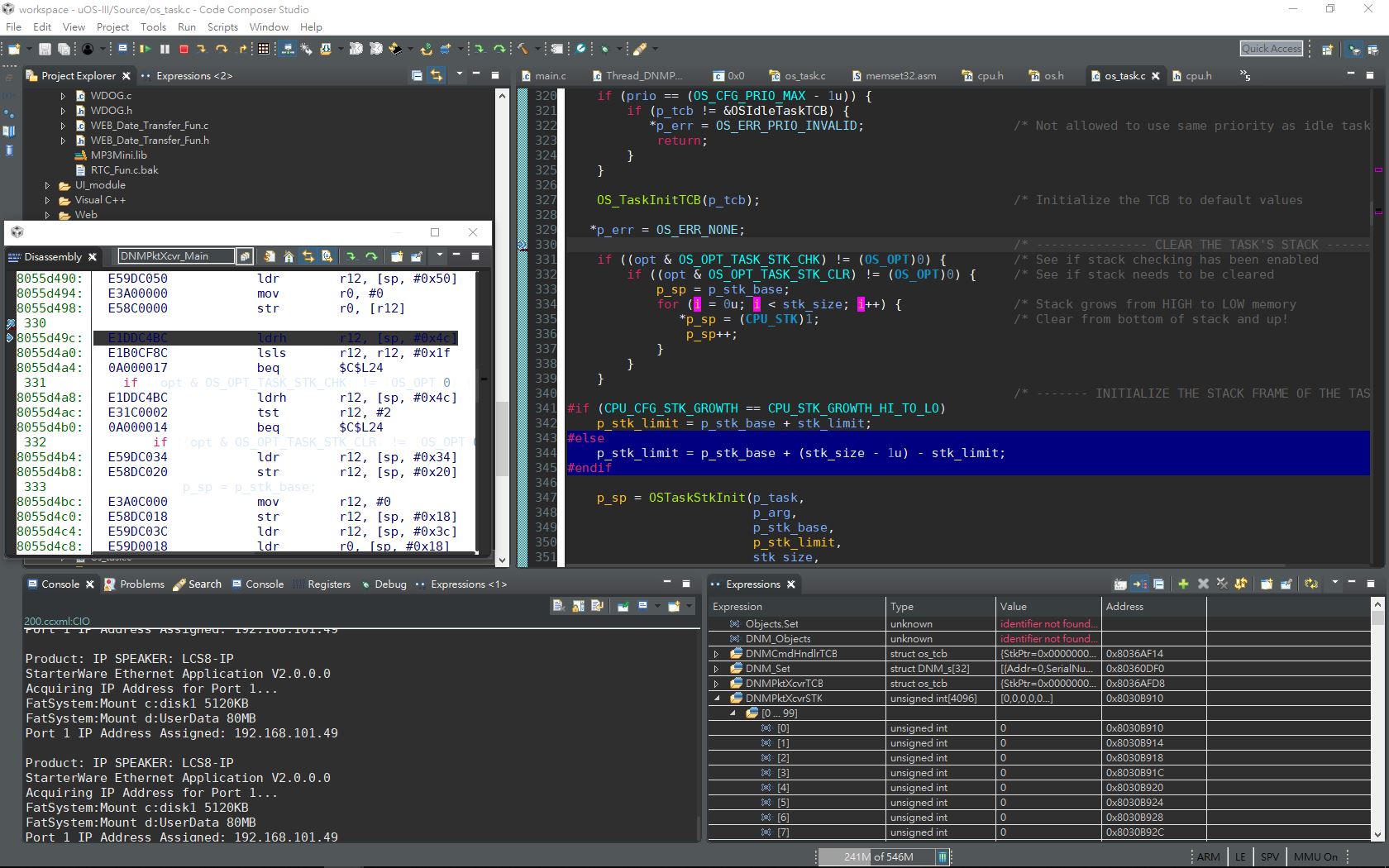 2. There is no corresponding instruction for "p_sp++"statement. I cannot find line 336 in Disassembly window.