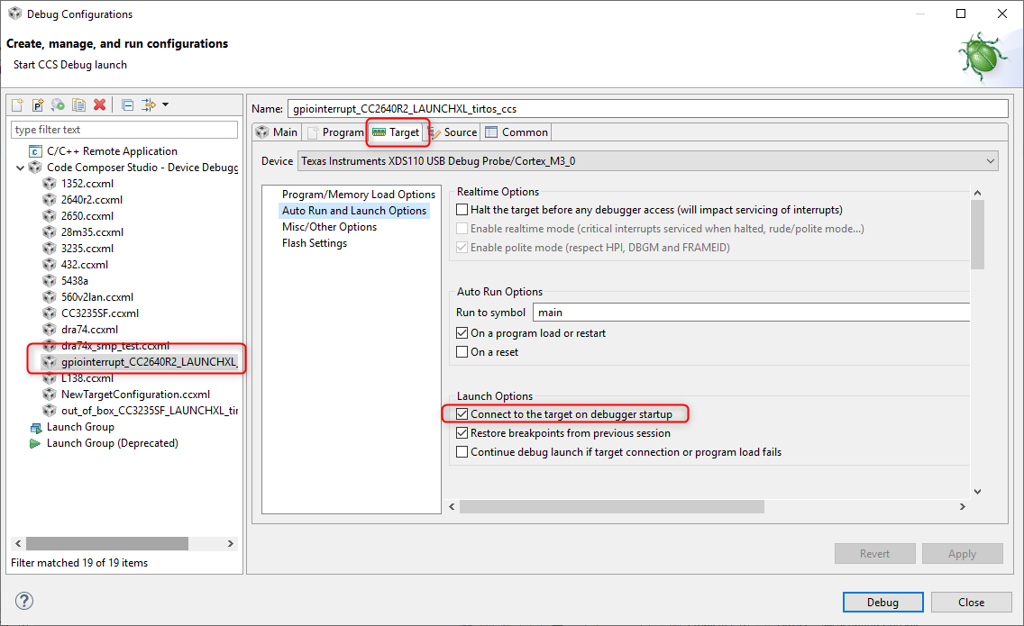 To get around this problem, I now have to explicitly launch the .ccxml file, connect to the board and then download the program as 3 separate steps instead of this automatically occurring by pressing the debug button. This was working before and then somehow someway it got into this mode and it's doing it on all my Simplelink processors (i.e, CC1352, CC3220, CC3235, etc) now. Do you know what could have caused this and more importantly how to fix it? Please advise.