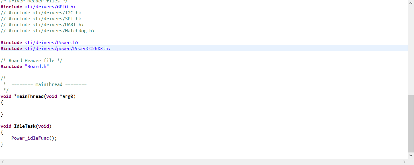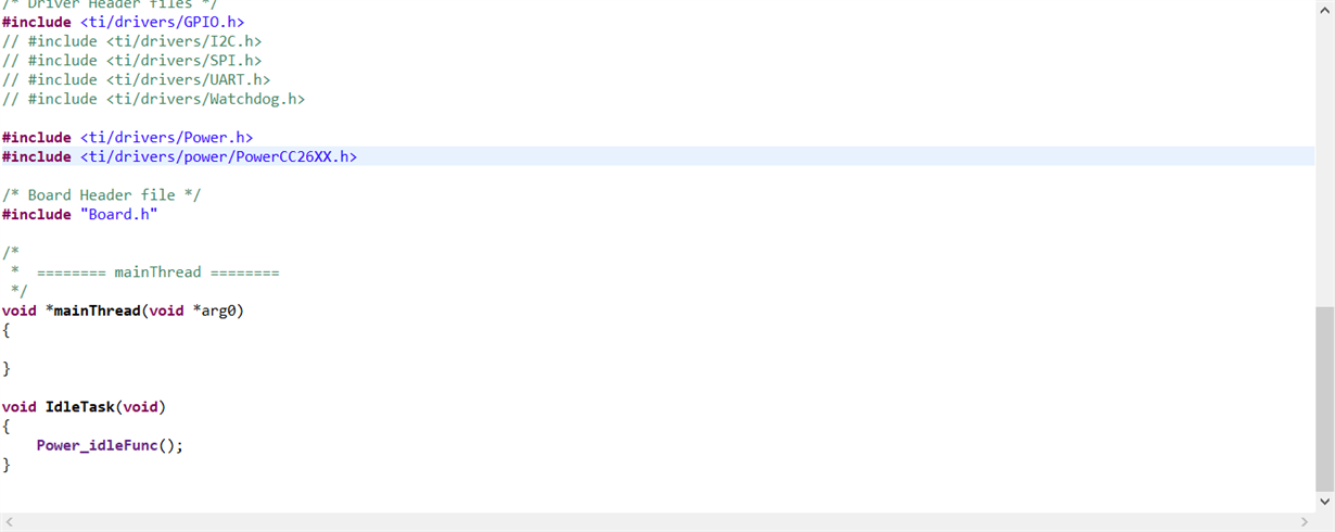 Then I imported the empty project and deleted the LED blinking code. Besides, I added a Idle task and put Power_idleFunc(); Into the Idle task.
