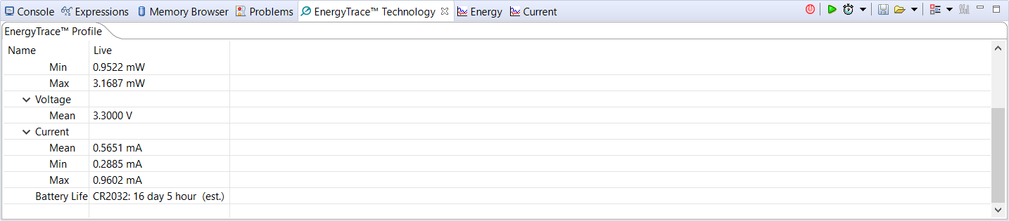 The screenshot shows my edited edition of empty project and the current from EnergyTrace.