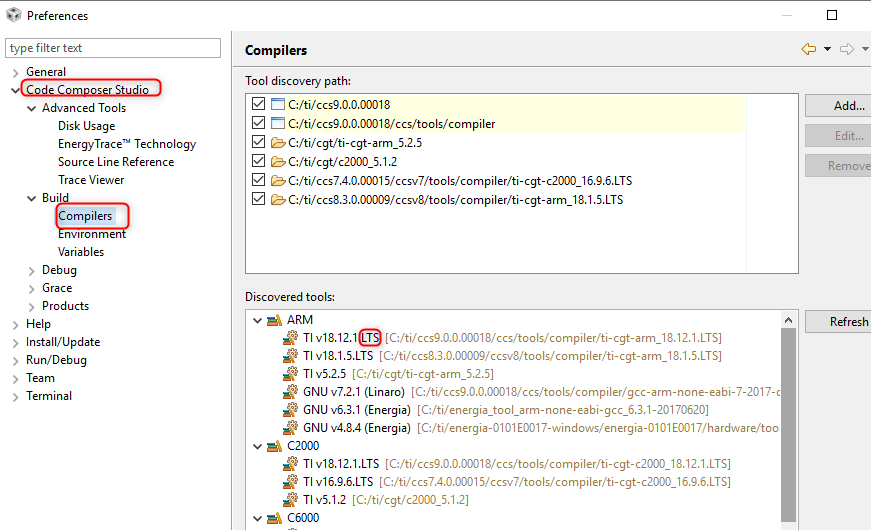 I already checked the Code Composer Studio Installation Details, but the version part of ARM Compiler tools did not discribe "STS" or "LTS", only "18. 12. 1".