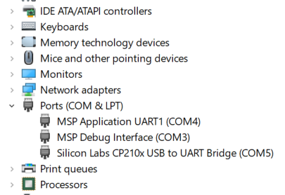 I just unpacked this MCU and am trying the out-of-box demo to check functionality. The loaded program works (the lightsensor part of the code starts up and works while the GUI tries to connect). The connections are shown below (COM5 is my FET connection). I try connecting to COM4 when I run the OOB GUI and the program gets stuck in "waiting for data...". I gave it up to two minutes without any success. Any ideas of what to do to fix this?