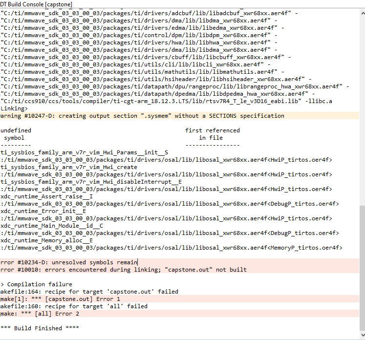 HI, i'm new to developing on CCS for IWR6843. I encountered some linker errors with the API Library of mmwave SDK and could not continue.
