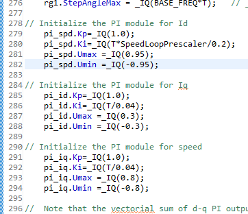Hello, I am using CCS to control the PMSM in FOC, while speedRef = _IQ(0.3), the respond is quickly. But, when I change the speedRef = _IQ(0.8), the respond is slow. I guess the problem is the parameters.But which controller parameters should I change? Please help. Thank you.