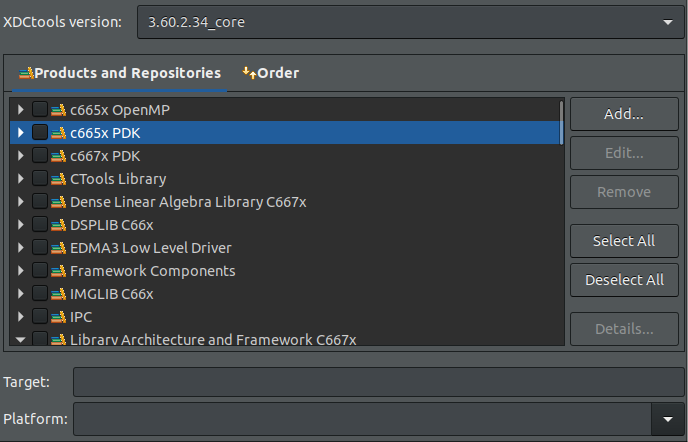 In the device family drop down list I can only see three entries "arm - cortexm3 - cortexm4". No entries for C6000 family.