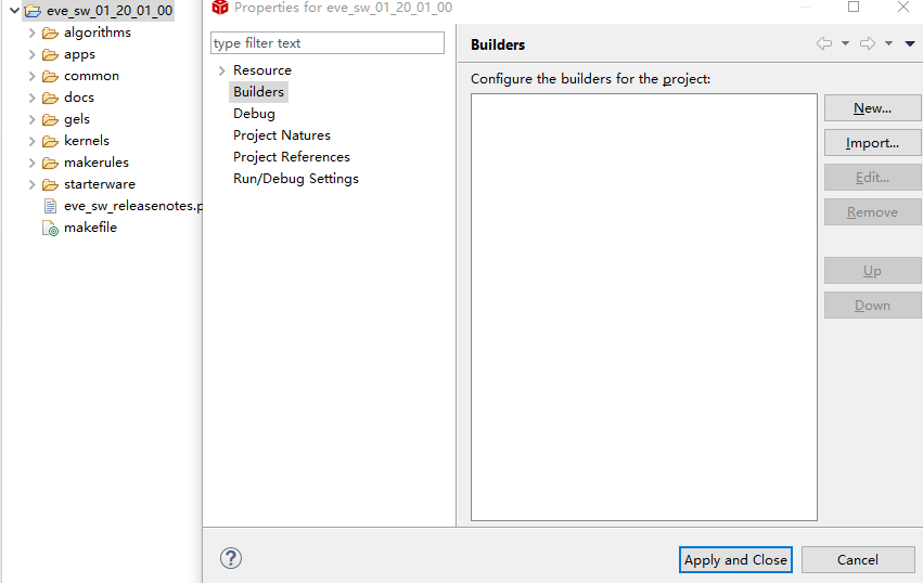 how to compile EVE module in official TI sdk using CCS v9? i tried to import the eve folder as a CCS project , however it can't be found by CCS. And i also have directly opened EVE folder but i don't know how to compile since i have no idea configuring the compiler.