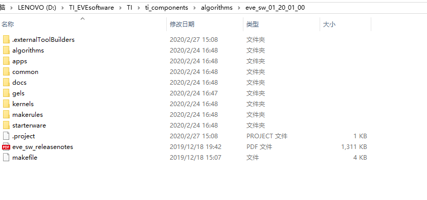 official TI sdk EVE folder: (D:\TI_EVEsoftware\TI\ti_components\algorithms\eve_sw_01_20_01_00)