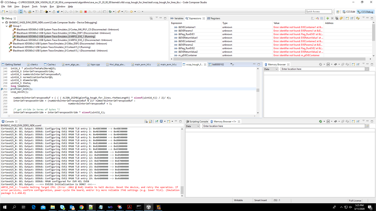 I was trying to profile on EVE using profiler_start(). I have included the 'eve_profile.h' header file. However its not able to finish execution of profiler_init(), and gets hung. And when I try to halt the EVE core I get the above error.