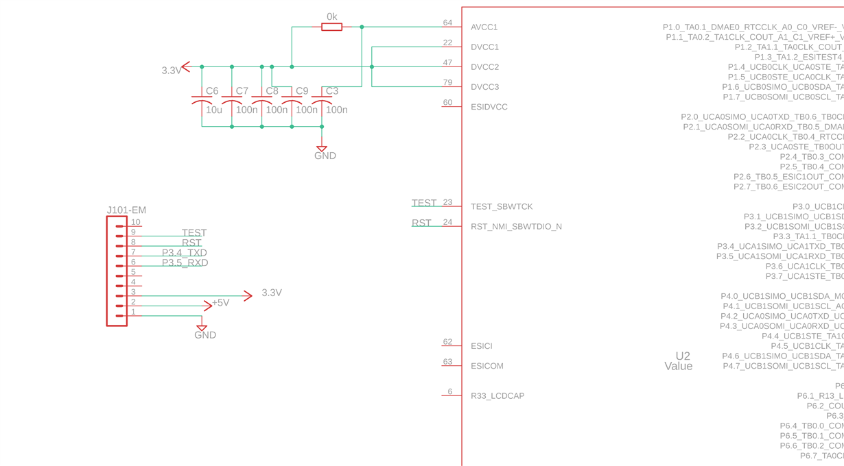 SBWTDIO to RST ( 47 Kohm and 2.2 nF capacitor is being used)