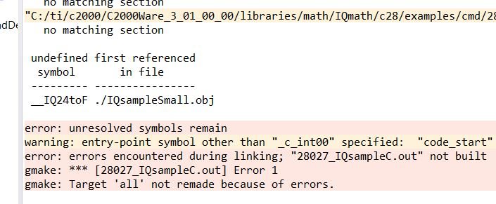 which is a simple project featuring IQmath. I added xx=_IQtoF(ar1) to the program code in which ar1 and xx are Iq24 and float variable respectively , and got the following error: