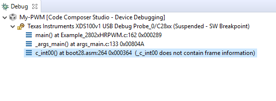 I have modified PWM example and commented all other modules except 1A and 2A for generating PWM. While running at the debug section, I am seeing these three points. What's the meaning of that?