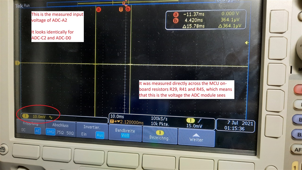 In my understanding the problem is located on the MCU. But if i use the control Cards docking station i there is no noisy signal to measure. It is perfectly what it should be. (Furthermore i choose a very long Acquisition Window for the ADC Measurement.. this should not be the problem)