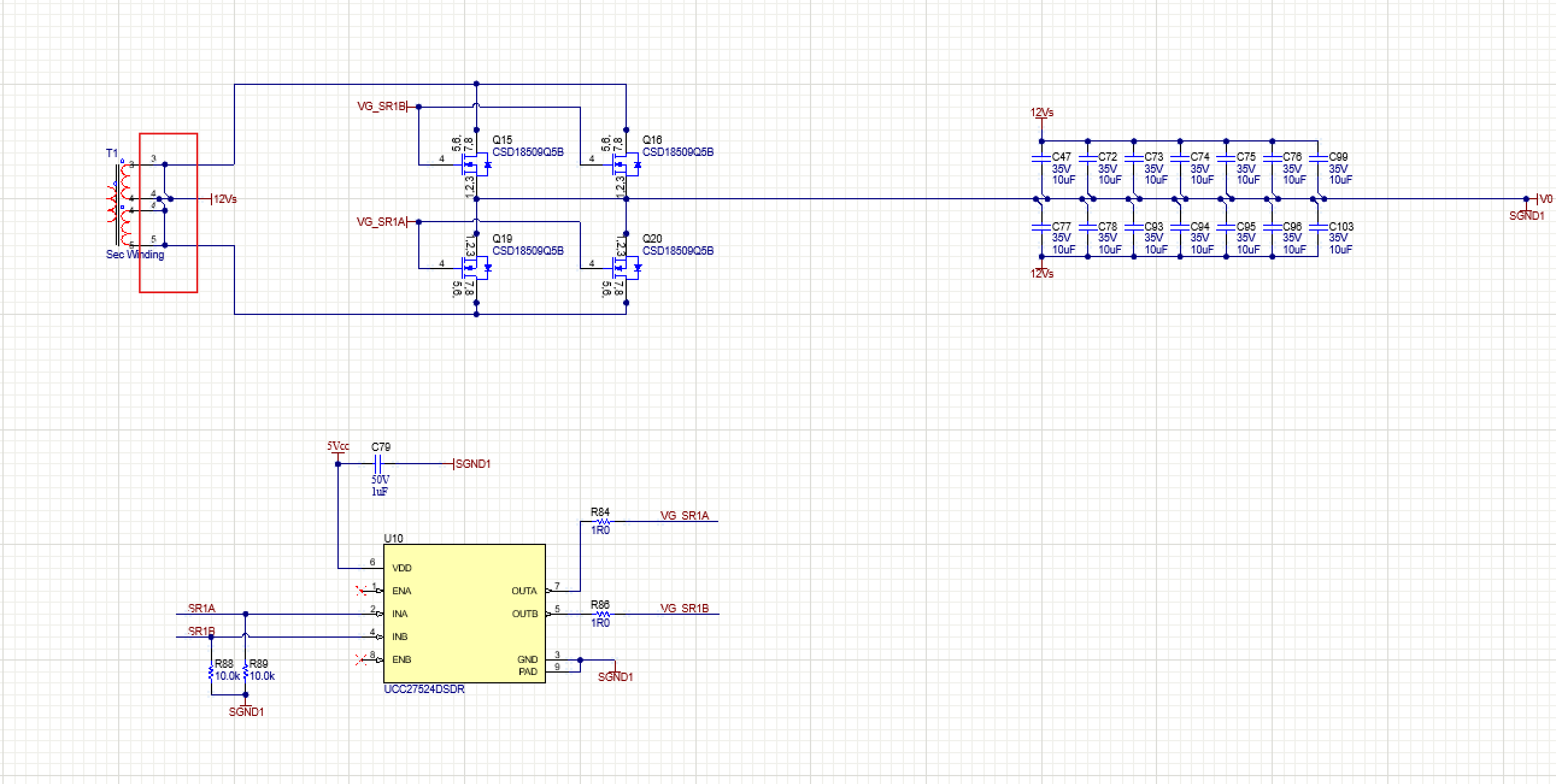 I found the SR Board design files in the zip file of the CAD/CAE symbols. I have a question, why is the transformer on the secondary side short-circuited, so that the transformer has no function.