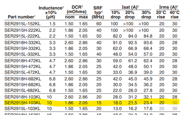 2. 240W output power(Iout 4.36A), minimum Isat/Irms_max