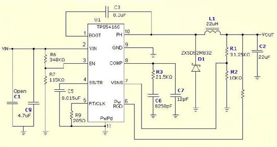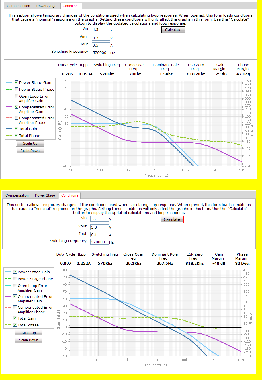 I designed TPS54160 circuit which Vin=4.5 - 36V, Vout=3.3V, Iout=0.5A as follows. Loop Response page showed Phase Margin=84 Deg.
