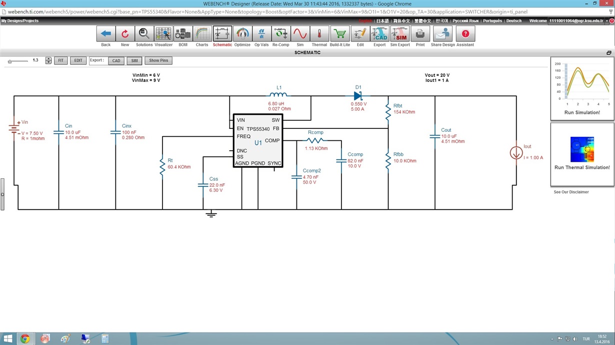 If the circuit failed after construction, did you use the board layout that was exported from WEBENCH®? Does the Lithium battery have enough output current to drive the SMPS at a little over 3.5A?