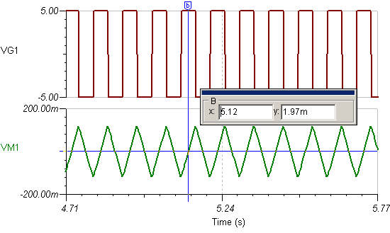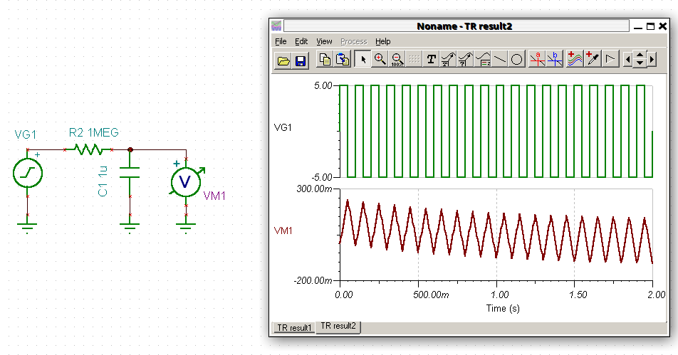 a +/- 5v 1hz square wave is going through an RC stage ... and showing evidence of a decaying voltage from start