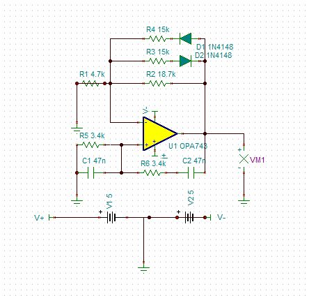 On trying to implement the circuit , the ERC report is all ok but the dc analysis and AC analyses are prompting the message of error "irregular circuit". I am not quite sure about the jumpers, changing their name with the name of the voltage source and the name of the op-amp (V+ & V-) is sufficient to ensure their work??