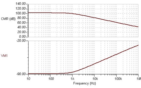 What you've plotted is the AC response of the circuit, not the CMR. Those curves show you 20*log(VFx) plotted against frequency, where VFx is the output voltage from the amplifier.