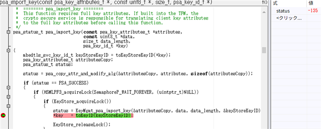 #define KEY_HSM_LIFETIME PSA_KEY_LIFETIME_FROM_PERSISTENCE_AND_LOCATION( PSA_KEY_PERSISTENCE_HSM_ASSET_STORE, PSA_KEY_LOCATION_LOCAL_STORAGE) static void vos_store_test( void ) { uint8_t u1t_Key16Data[16] = {0x00, 0xBF, 0x85, 0x49, 0xC3, 0x79, 0xE4, 0x04, 0xED, 0xA1, 0x08, 0xA5, 0x51, 0xF8, 0x36, 0x23}; psa_key_id_t key_id = PSA_KEY_ID_USER_MIN; psa_key_attributes_t attributes = PSA_KEY_ATTRIBUTES_INIT; int_fast16_t s2s_status; s2s_status = psa_crypto_init(); if (s2s_status != PSA_SUCCESS) { while(1); } s2s_status = HSMLPF3_provisionHUK(); if (s2s_status != HSMLPF3_STATUS_SUCCESS) { while(1); } psa_set_key_id(&attributes, key_id); psa_set_key_type(&attributes, PSA_KEY_TYPE_AES); psa_set_key_usage_flags(&attributes, (PSA_KEY_USAGE_ENCRYPT | PSA_KEY_USAGE_DECRYPT)); psa_set_key_algorithm(&attributes, PSA_ALG_CCM); psa_set_key_lifetime(&attributes, KEY_HSM_LIFETIME); psa_set_key_bits(&attributes, 128); s2s_status = psa_import_key(&attributes, u1t_Key16Data, sizeof(u1t_Key16Data), &key_id); if (s2s_status != PSA_SUCCESS) { while(1); } psa_reset_key_attributes(&attributes); psa_destroy_key(key_id); }