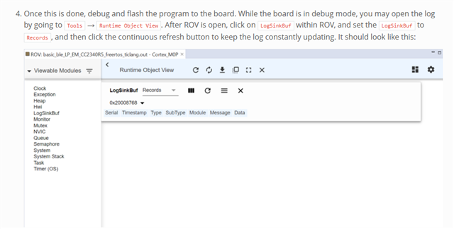 I am referring to the documentation in SDK simplelink_lowpower_f3_sdk_9_11_01_19, Section -> Setting up Log Modules but I do not see the same options as shown in step 4 (refer image below)