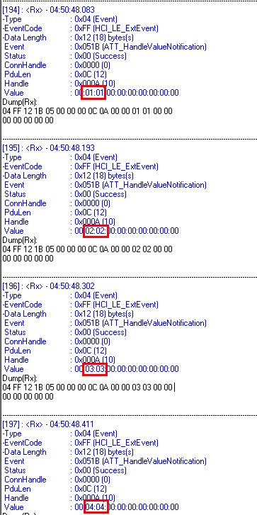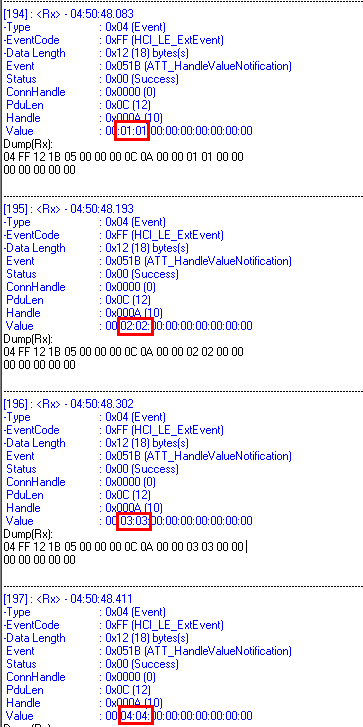 I call the function 4 times, so 4 GATT_Notifications with each 10 byte were sent.