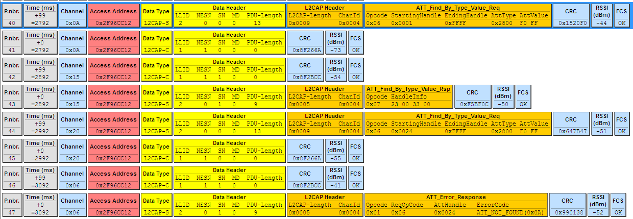 2. start handler was 0x0001 defalut ,but start handler was 0x0024 in the Second ATT_FIND_BY_TYPE_VALUE_REQ.