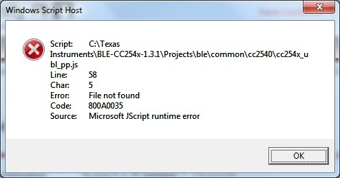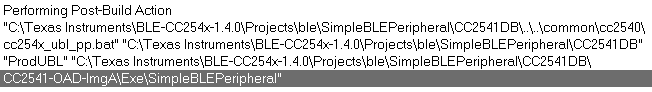 I'm following the OAD Guide for CC254x. I keep getting a Windows Script Host error when IAR tries to run the cc25x_ubl_pp.js file at Compile time. It says the file cannot be found. I've triple checked the path in the Post Build Command Line. I didn't any mention of this problem on the forums which leads me to believe this may be a corrupted file, but I've tries deleting/re-installing the BLE stack a few times to no avail. Thanks guys.