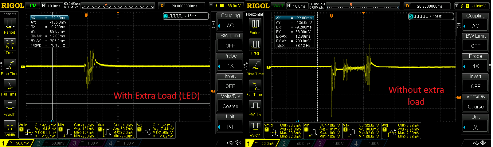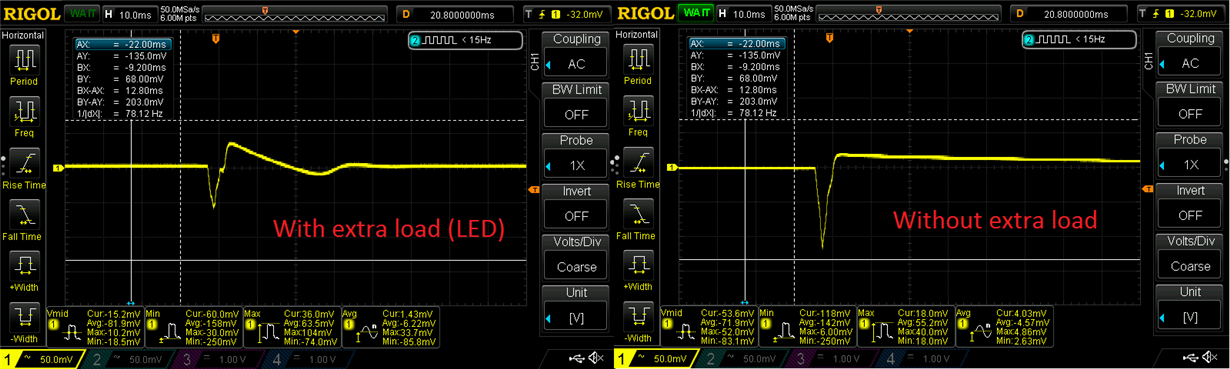 • It looks like the transitions between the very low current load to higher current loads cause issues for the LDO. I recommend that you post in the linear regulator forum e2e.ti.com/.../ as they are the experts on these products and will able to support you the best on this topic.