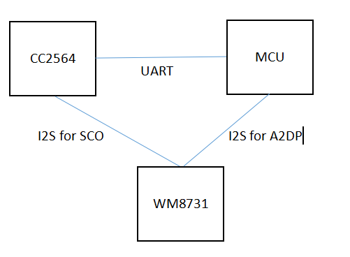 Here is the situation:Our mcu with only one I2S port , so we want the CC2564B and MCU share the same CODEC (Wolfson8731).