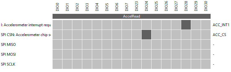 I am trying to use SmartRF06 on-board accelerometer via SPI from Sensor Controller Studio and cannot figure out how to map MISO, MOSI and SCLK pins. According to SmartRF06 Evaluation Board User’s Guide (SWRU321A) those signals are mapped to RF1.20, RF1.18 and RF1.16 connector pins respectively.