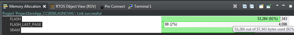 A second question, when I compile in CCS, it shows that the code uses almost 100% of the flash, why? 53kb is not the 100% of the 110Kb of the CC2650, is it because of the BLEStack?? But if so, whith this very basic project we're filling almost the whole flash, leaving no room for any useful application.