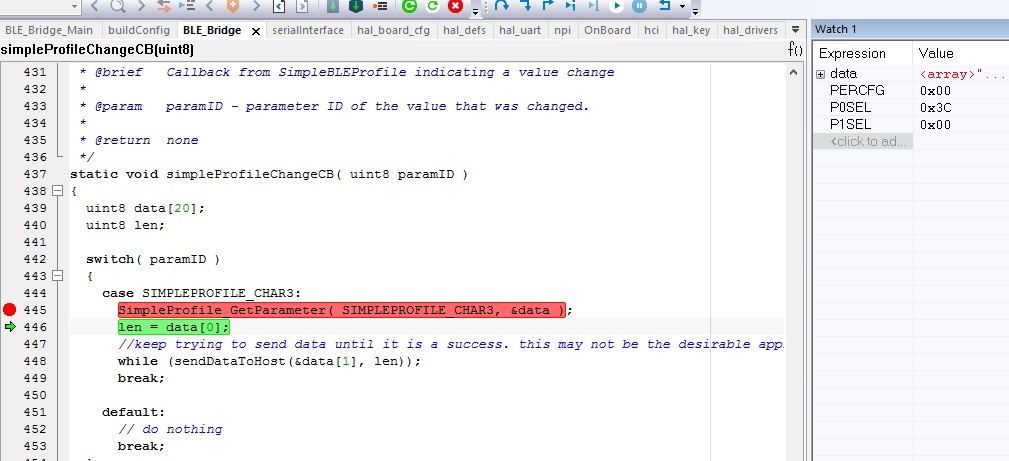 I'm using the BLE 1.4.2 SDK with a CC2540. The board file used for every project in the SDK (hal_board_cfg.h) is configured for UART 1 Alt. 2 in SPI mode.