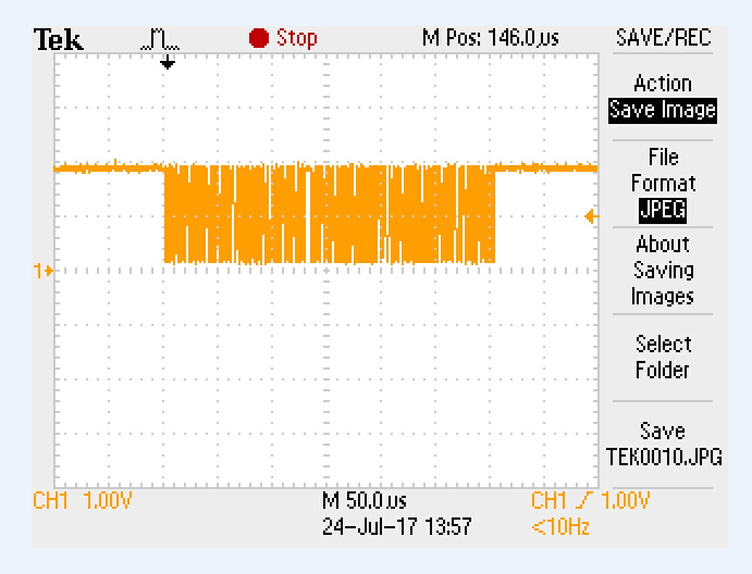 i2cStart(); i2cTx(I2C_OP_WRITE | ALS_I2C_ADDR); //ADDR= 0x0048 i2cTx(ALS_REG_CFG); //ALS_REG_CFG = 1 i2cTx(ALS_CFG_ONE_SHOT >> 8);//ALS_CFG_ONE_SHOT = 0x60A0 i2cTx(ALS_CFG_ONE_SHOT >> 0); i2cStop(); // Read the result after 100 milliseconds + a 20% margin evhSetupTimerTrigger(0, 120, 2); // Schedule the next execution fwScheduleTask(1);