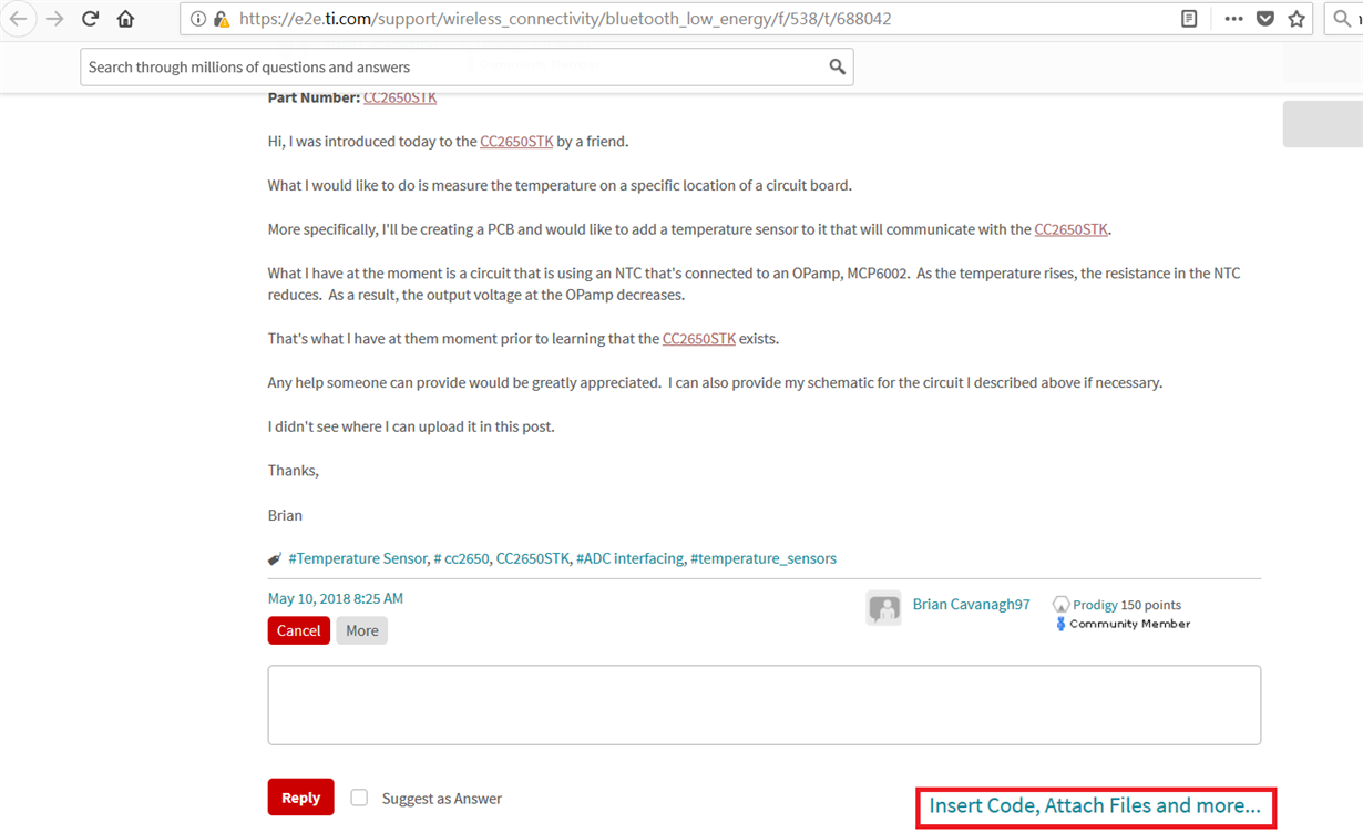 More specifically, I'll be creating a PCB and would like to add a temperature sensor to it that will communicate with the CC2650STK.