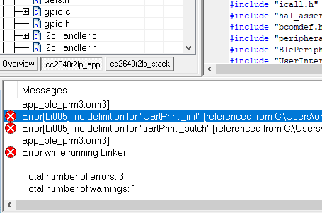 Error[Li005]: no definition for UART_config [referenced from UART.orm3(drivers_cc26x0r2.arm3)]