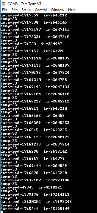 I am unable to calculate the heart rate and SPO2 by using ir and red led data. i am using maxrefdes117 and interfacing with cc2640r2f board .