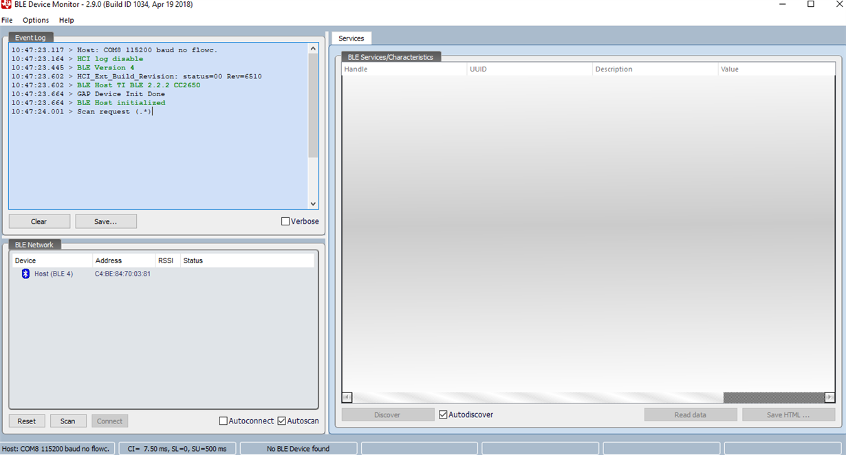 Can you tell me why there is no "sensorTag" written under "hostBLE4"? in this way I can not detect the data...