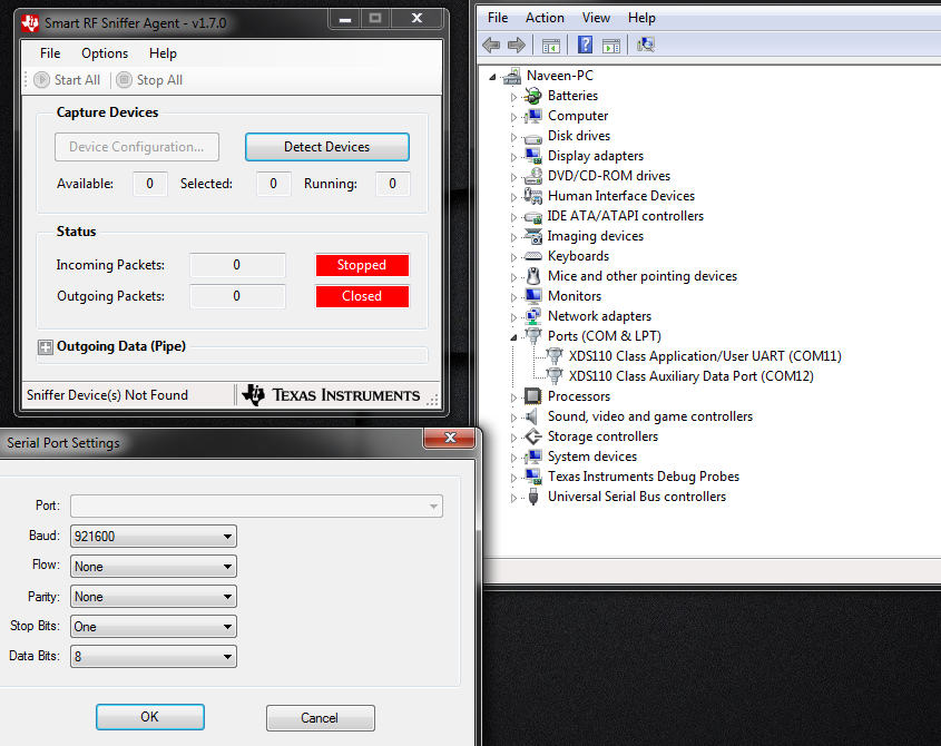 and when I open the Packet sniffer , the device still not detected.