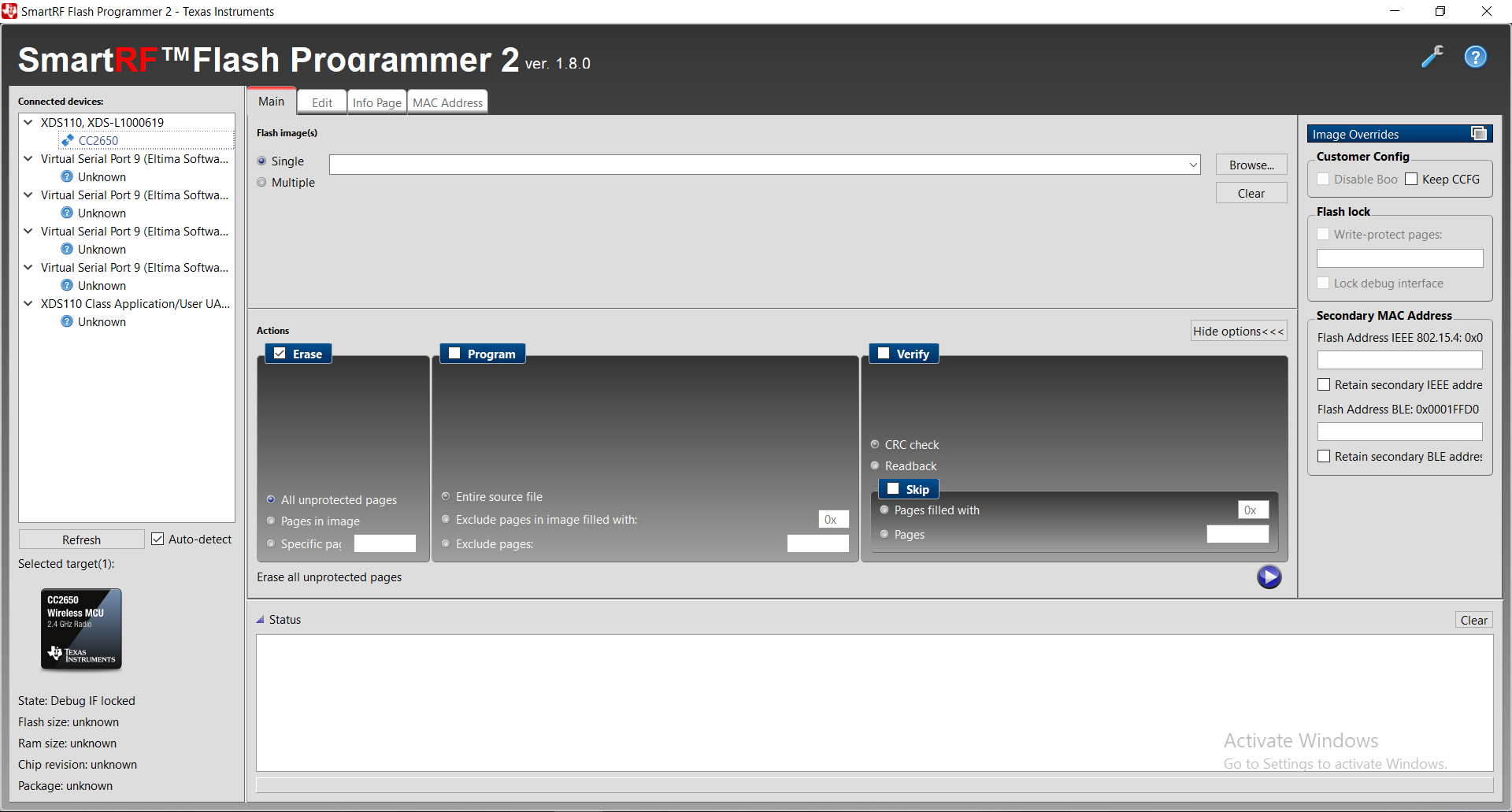 i find some solutions ( from our forum ) that i shoud do forced mass erase with smartRD Flash Programmer 2? but i still not know what to do. What should i do for debug and connect my cc2650lp again? this error just happened today. help me, thank you..