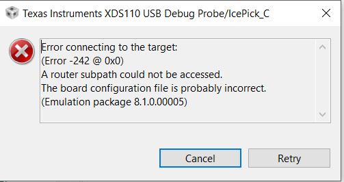 i'm learning my cc2650lp, project zero. when i debug program, i got this error: